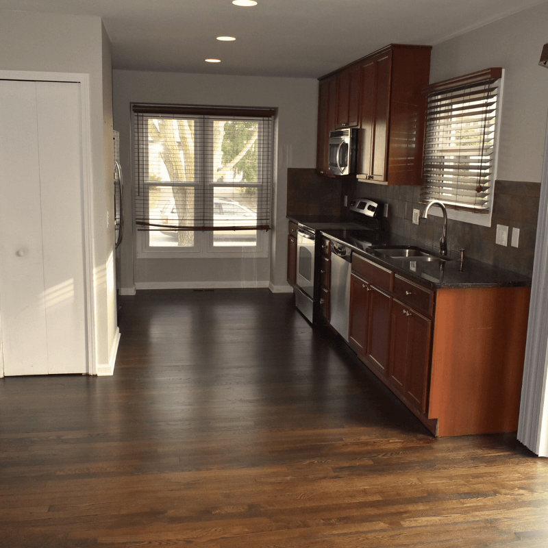 Our customer wanted to refinish her old flooring, with burgundy stain, in order to match some recent remodeling she did to the home. Not only did she get renewed, shiny flooring, but a vibrant new stain that gives the interior space a warmer, elegant style.