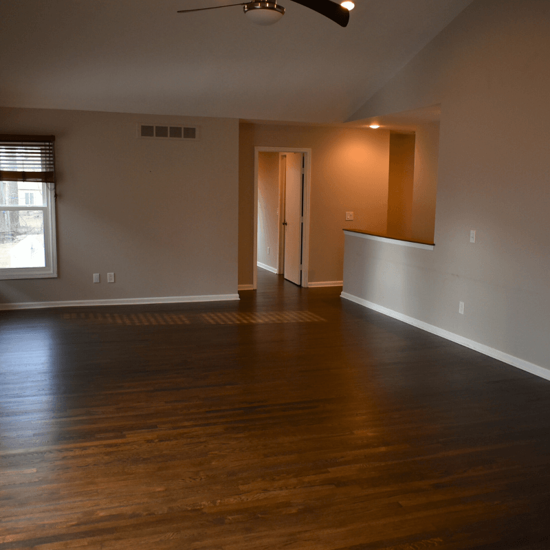 We begin every hardwood flooring project by clearing the area by removing all furniture and rugs to create an unobstructed workspace. Next, we protect surrounding areas by covering vents, light fixtures, and other surfaces with plastic and painter’s tape, ensuring that dust and debris are contained. Finally, we thoroughly clean the floor, sweeping and vacuuming to remove any dirt, providing a pristine surface for sanding and refinishing.